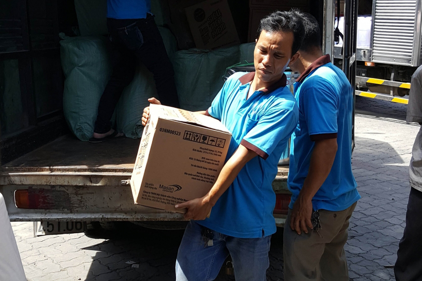 Đóng gói đồ đạc cho khách hàng trước khi bốc dỡ lên xe
