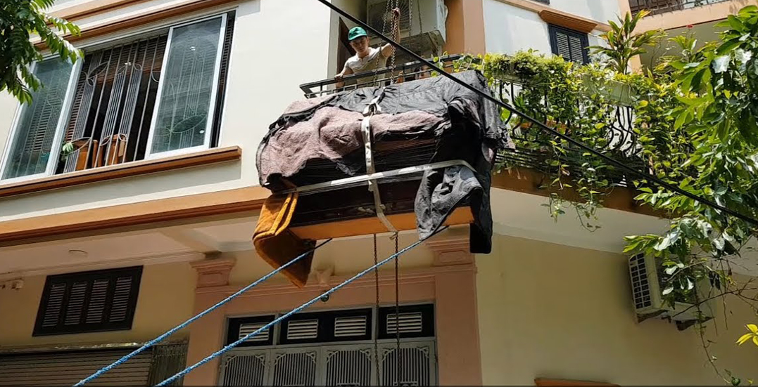 Vận chuyển đàn piano cho khách hàng ở một căn nhà nhiều tầng tại Hà Nội