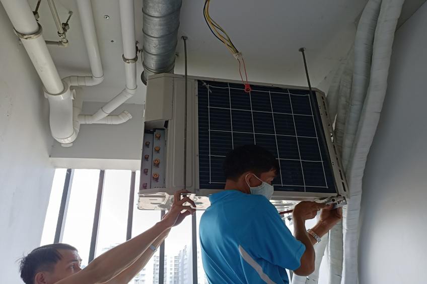 Nhân viên tiến hành tháo gỡ điều hòa theo yêu cầu